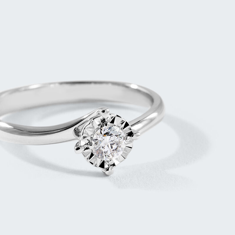 Anello Solitario Petali Oro Bianco Diamante - Anelli con Pietre Donna | Stroili