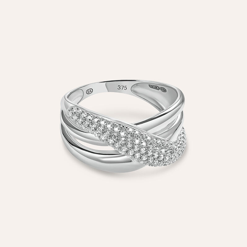 Anello Fascia Claire Oro Bianco Cubic Zirconia - Anelli a Fascia Larga Donna | Stroili