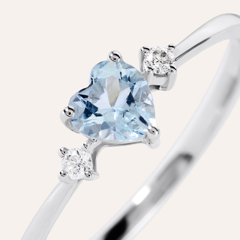 Anello Solitario Jasmine Oro Bianco Acquamarina Diamante - Anelli con Pietre Donna | Stroili