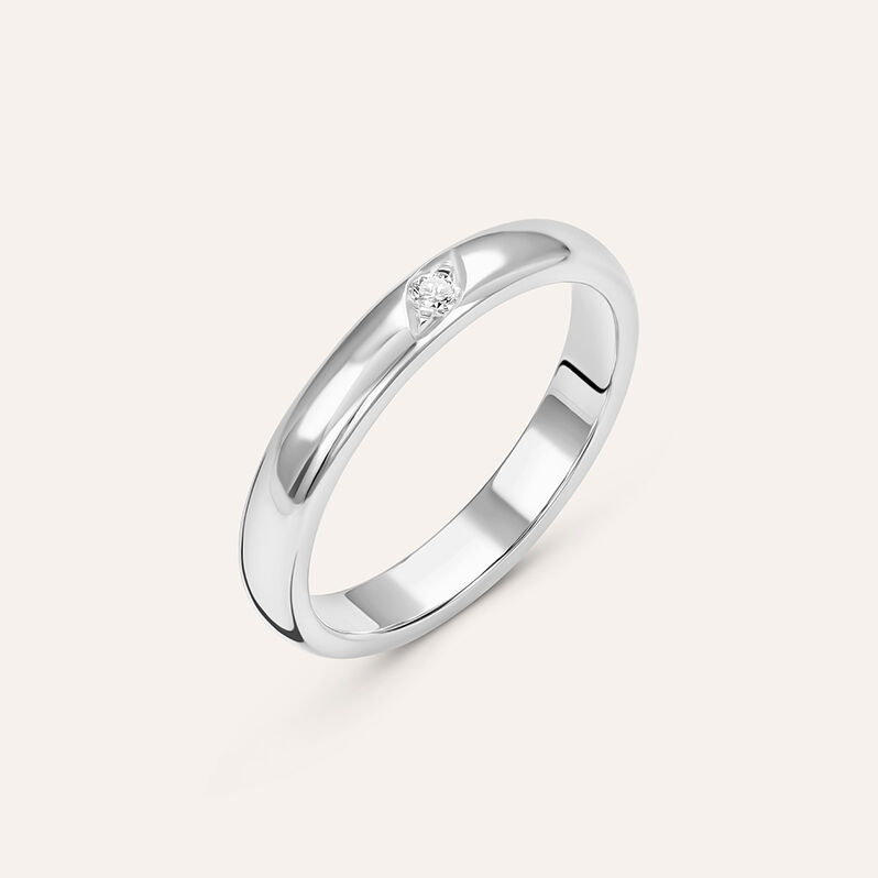 Fede Comoda 4 mm Oro Bianco Diamante - Anelli con Incisione Donna | Stroili
