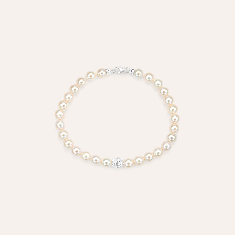 Bracciale Gabrielle Oro Bianco Perla D'Acqua Dolce Cristallo - Bracciali Donna | Stroili