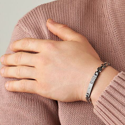Bracciale Con Targhetta Man Code Acciaio Bicolore Bianco / Nero Cubic Zirconia