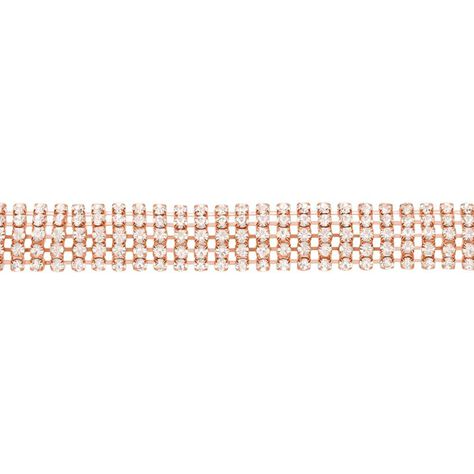 Bracciale multifilo largo in metallo rosato con strass