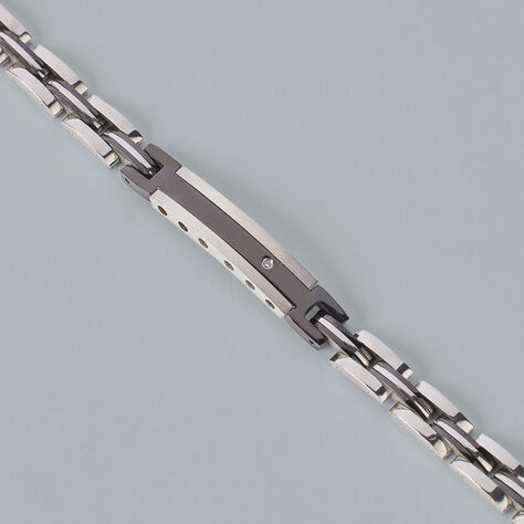 Bracciale Con Targhetta Man Code Acciaio Bicolore Bianco / Nero Cubic Zirconia - 21 cm