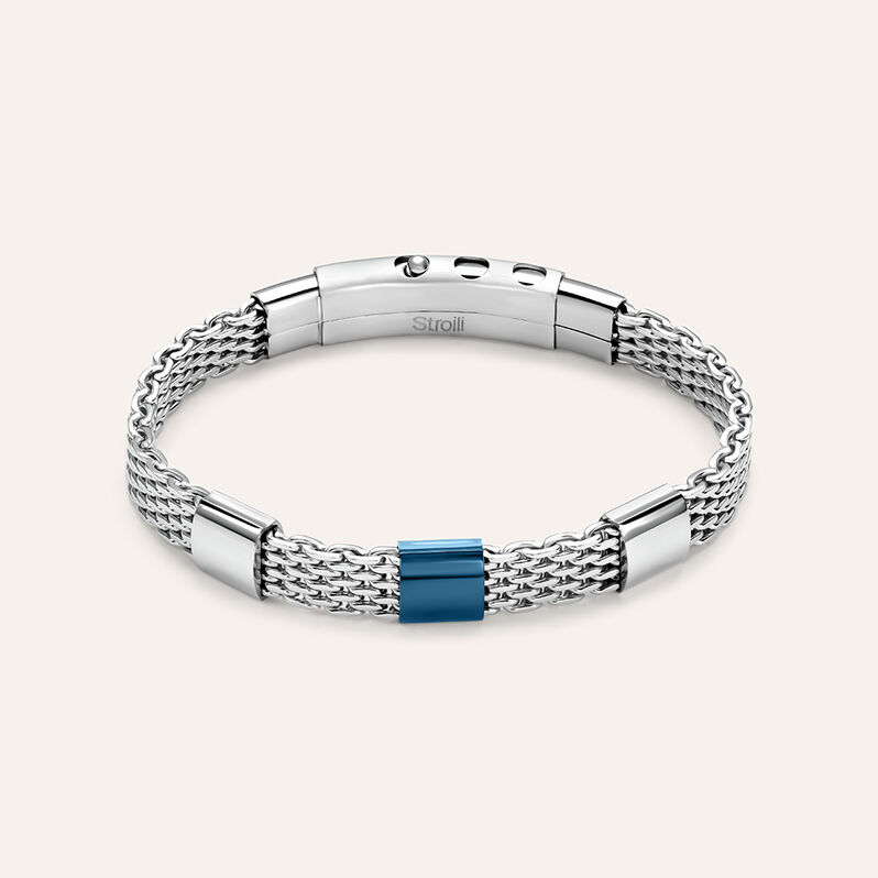 Bracciale elastico con pietre rotonde blu e acciaio - Bracciali Uomo | Stroili