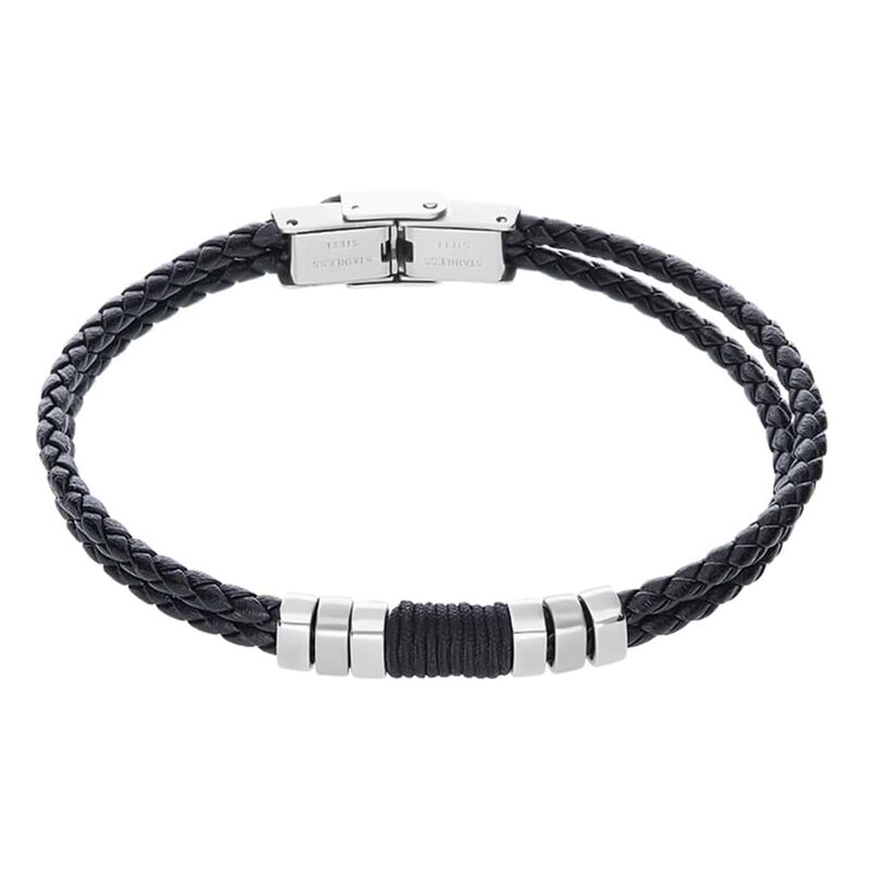 Bracciale cordino con inserti acciaio - Bracciali Uomo | Stroili