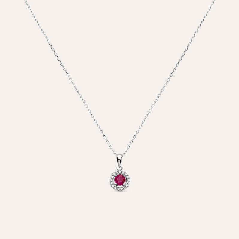 Collana Punto Luce Charlotte Oro Bianco Rubino Diamante - 42 cm