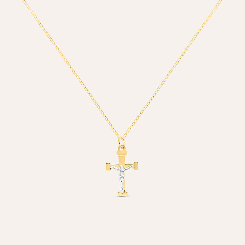 Collana Cristo Holy Oro Bicolore Giallo / Bianco - 44 cm