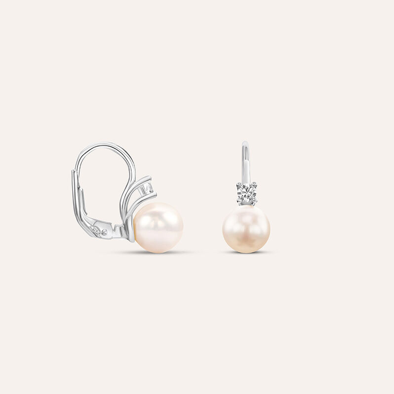 Orecchini Lobo Gabrielle Oro Bianco Perla D'Acqua Dolce Cubic Zirconia - Orecchini a Lobo Donna | Stroili