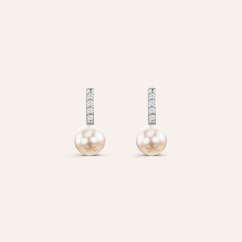 Orecchini Lobo Gabrielle Oro Bianco Perla D'Acqua Dolce Cubic Zirconia