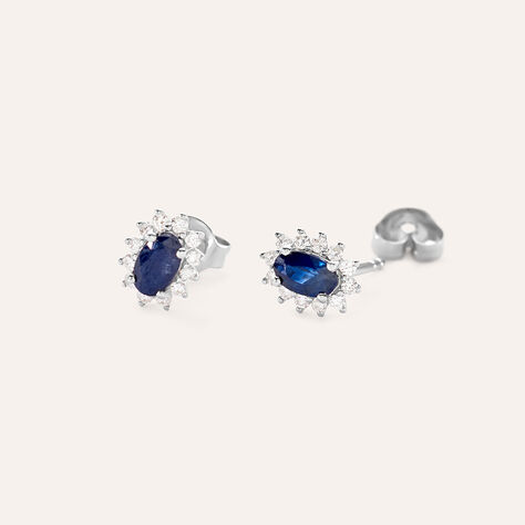 Orecchini Lobo Charlotte Oro Bianco Zaffiro Diamante - Orecchini a Lobo Donna | Stroili