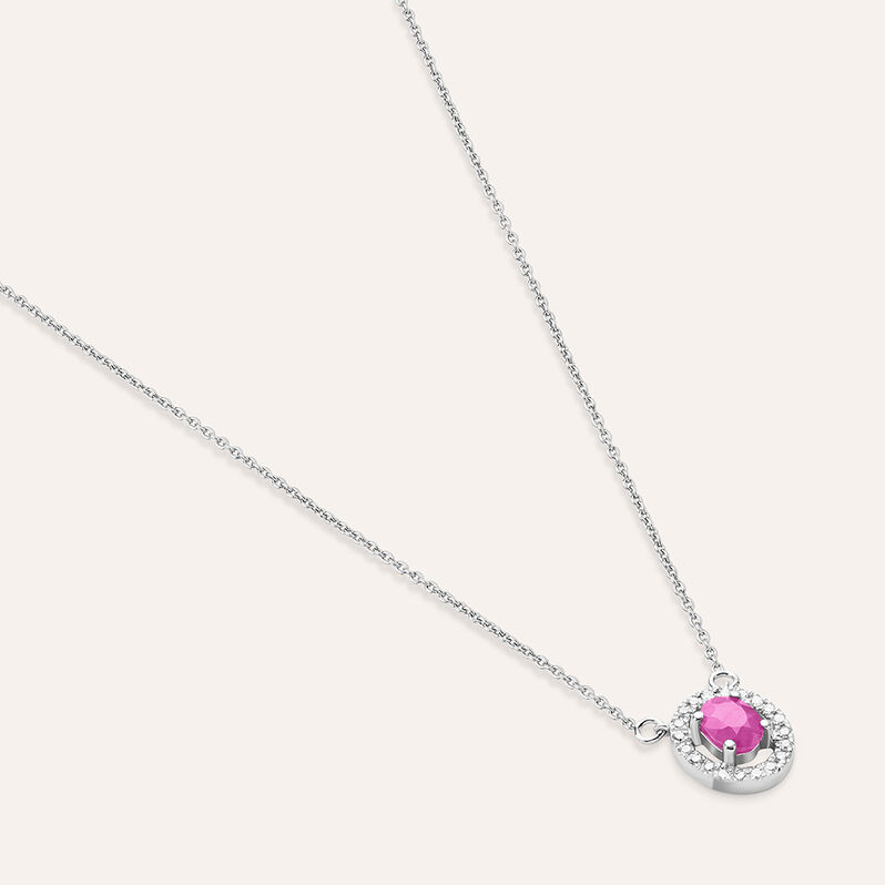 Collana Punto Luce Elizabeth Crown Oro Bianco Rubino Diamante - 40 cm