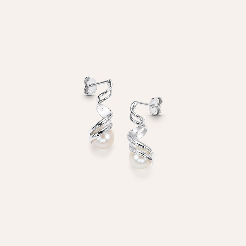 Orecchini Pendenti Gold Pearls Oro Bianco Perla D'Acqua Dolce Diamante - Orecchini Pendenti Donna | Stroili