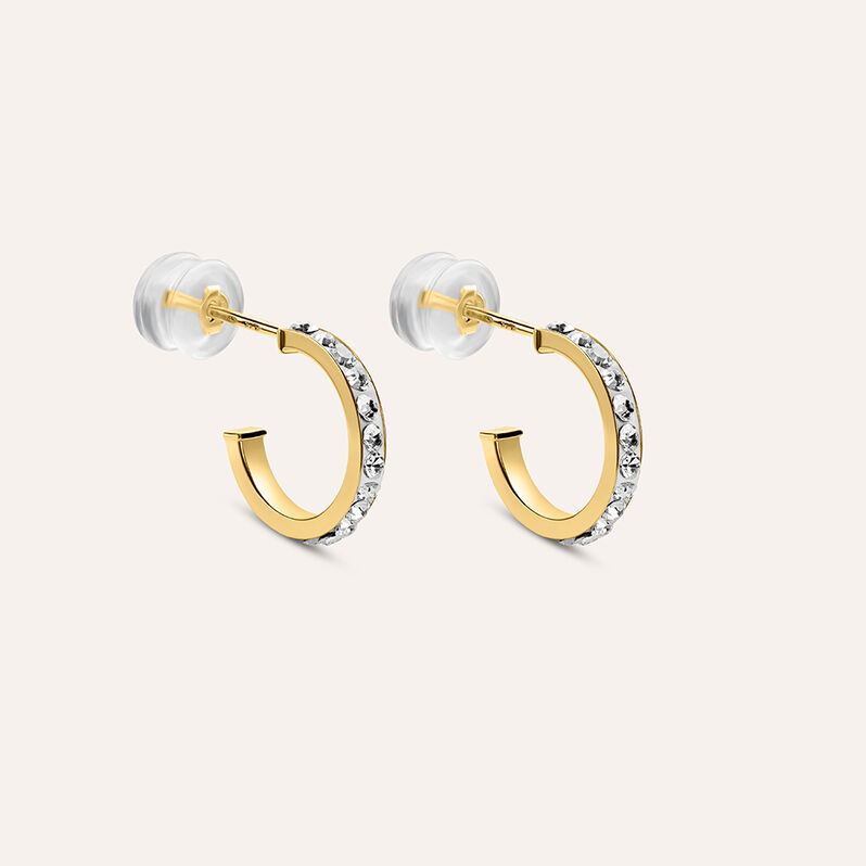 Orecchini A Cerchio Lady Sweet Acciaio Dorato Cristallo - 15 mm
