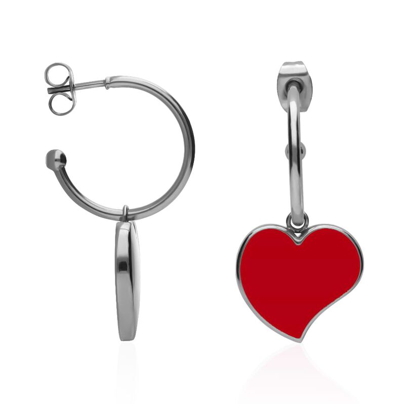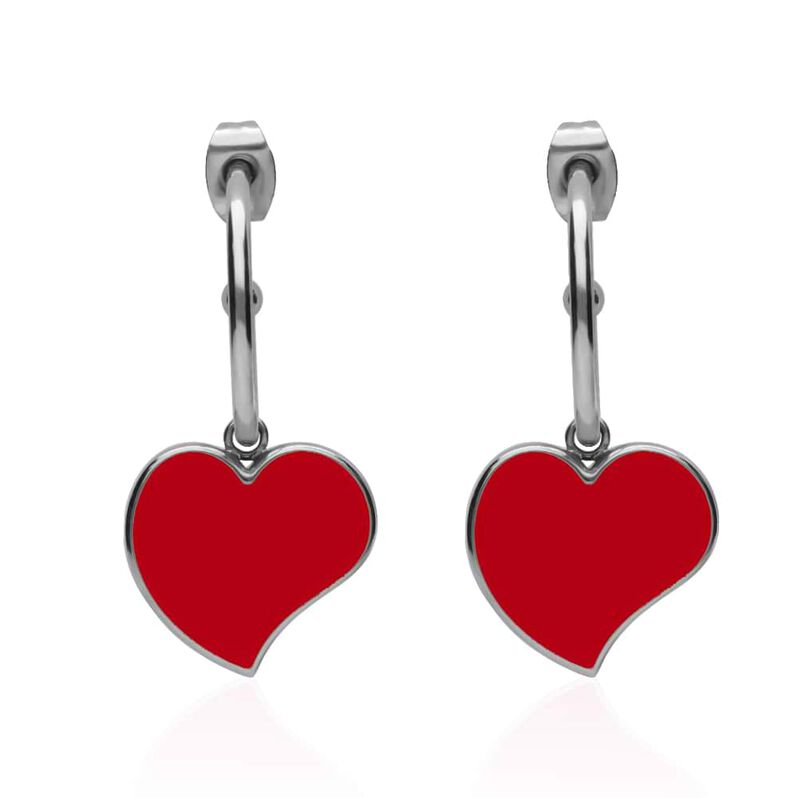 Orecchini cerchio con cuore pendente rosso - Orecchini a Cerchio Donna | Stroili