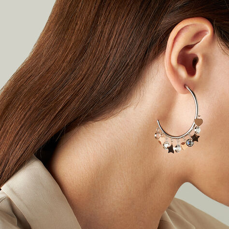 Orecchini A Cerchio Sunrise Acciaio Bicolore Bianco / Rosa Cristallo