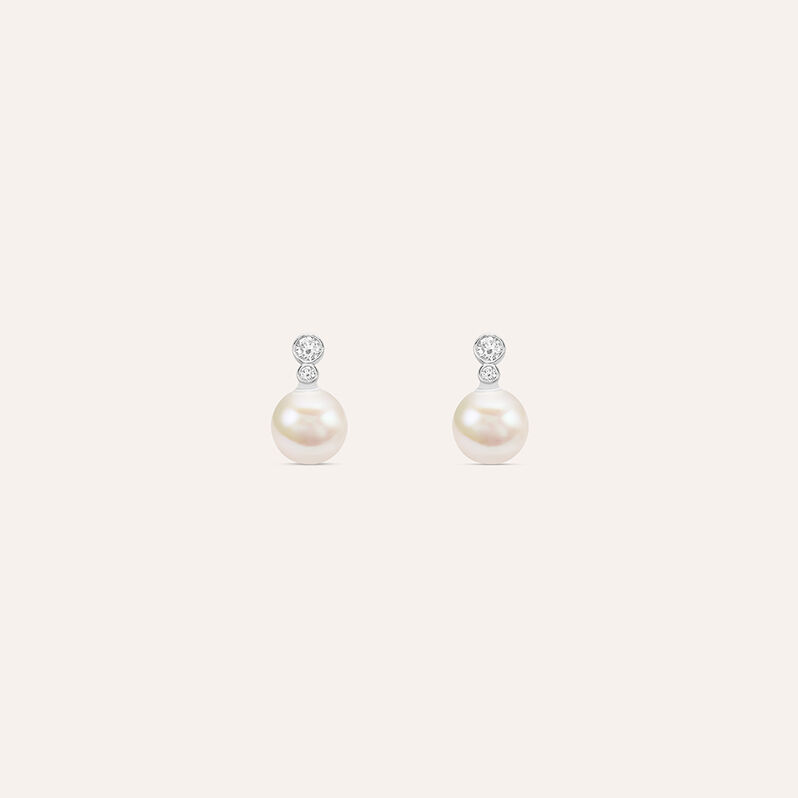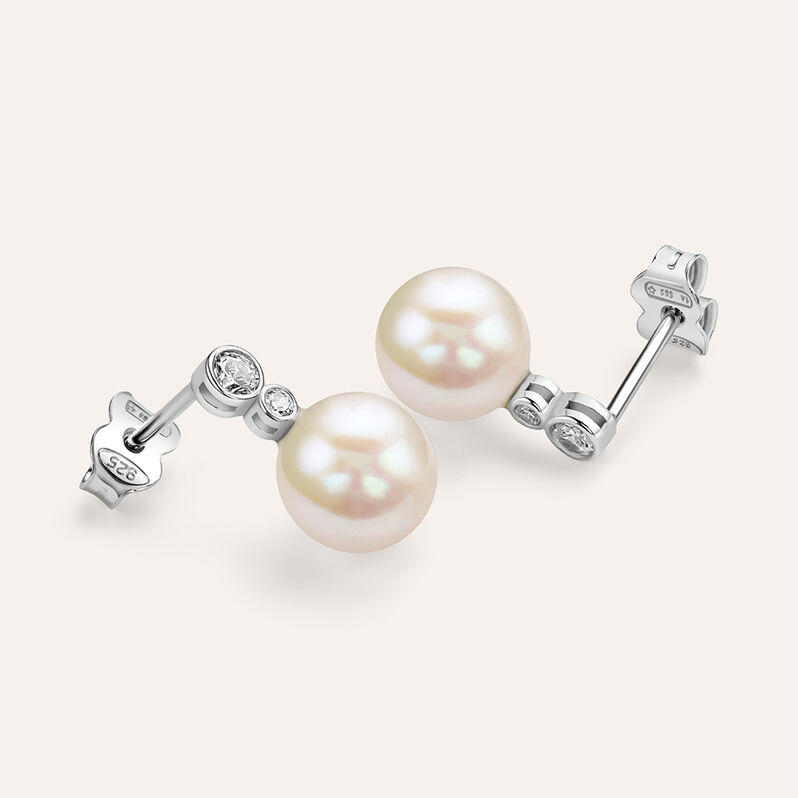 Orecchini Lobo Silver Pearls Argento Rodiato Cubic Zirconia Perla sintentica - Orecchini a Lobo Donna | Stroili