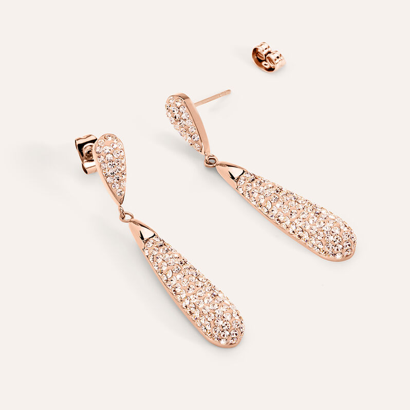 Orecchini Pendenti Lady Sweet Acciaio Rosa Cristallo - Orecchini Pendenti Donna | Stroili