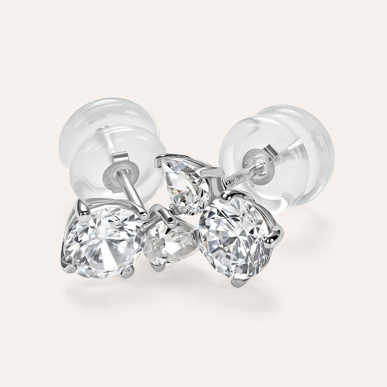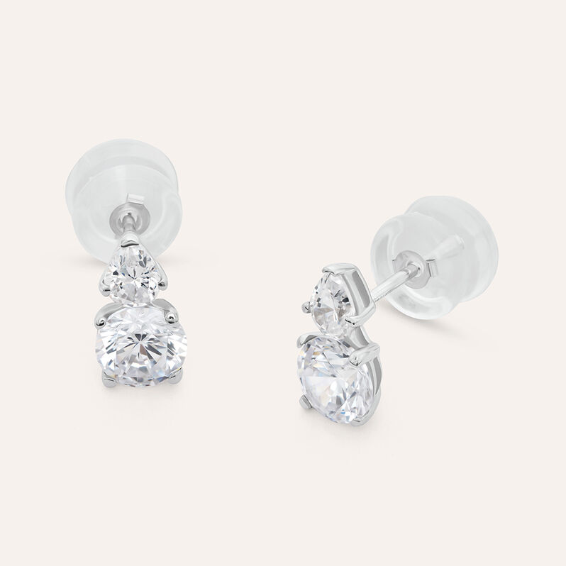 Orecchini Lobo Doppio Punto Luce Claire Oro Bianco Cubic Zirconia - Orecchini a Lobo Donna | Stroili