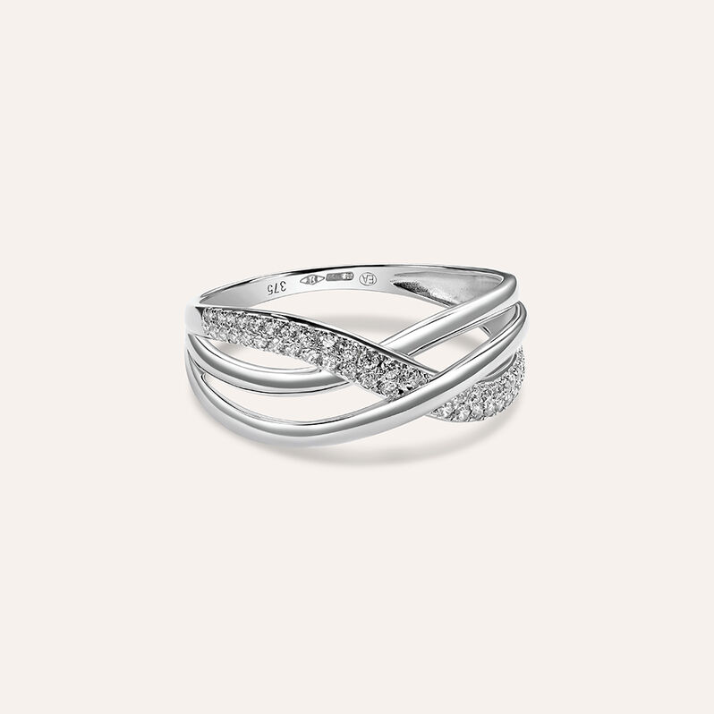 Anello Fascia Claire Oro Bianco Cubic Zirconia - Anelli a Fascia Larga Donna | Stroili